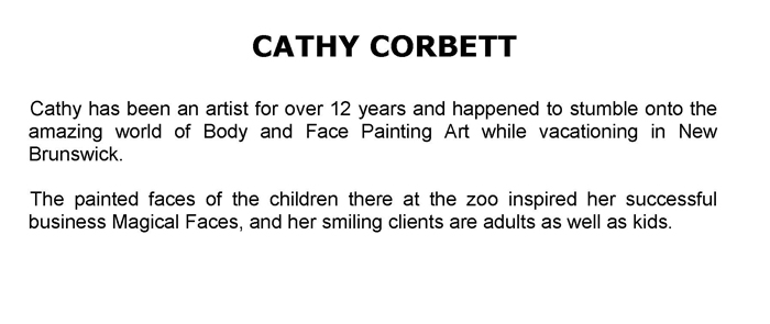 Children and adults can also have their faces painted by Cathy and her Magical Faces crew on September 29th from 11 to 4pm cost is only $5.00