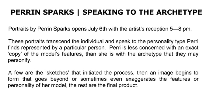 Portraits by Perrin Sparks opens July 6th with the artist’s reception 5—8 pm...... read more