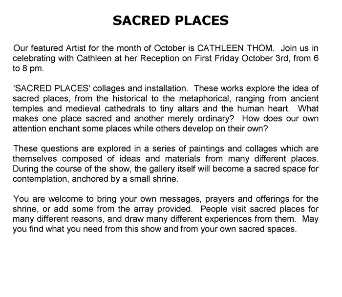 Our featured Artist for the month of October is CATHLEEN THOM. .... read more