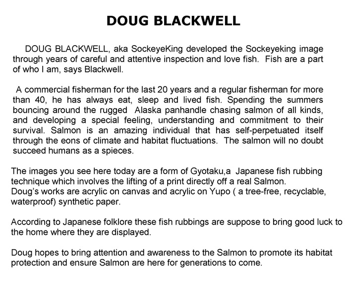 DOUG BLACKWELL, aka SockeyeKing developed the Sockeyeking image through years of careful and attentive inspection and love fish..... read more